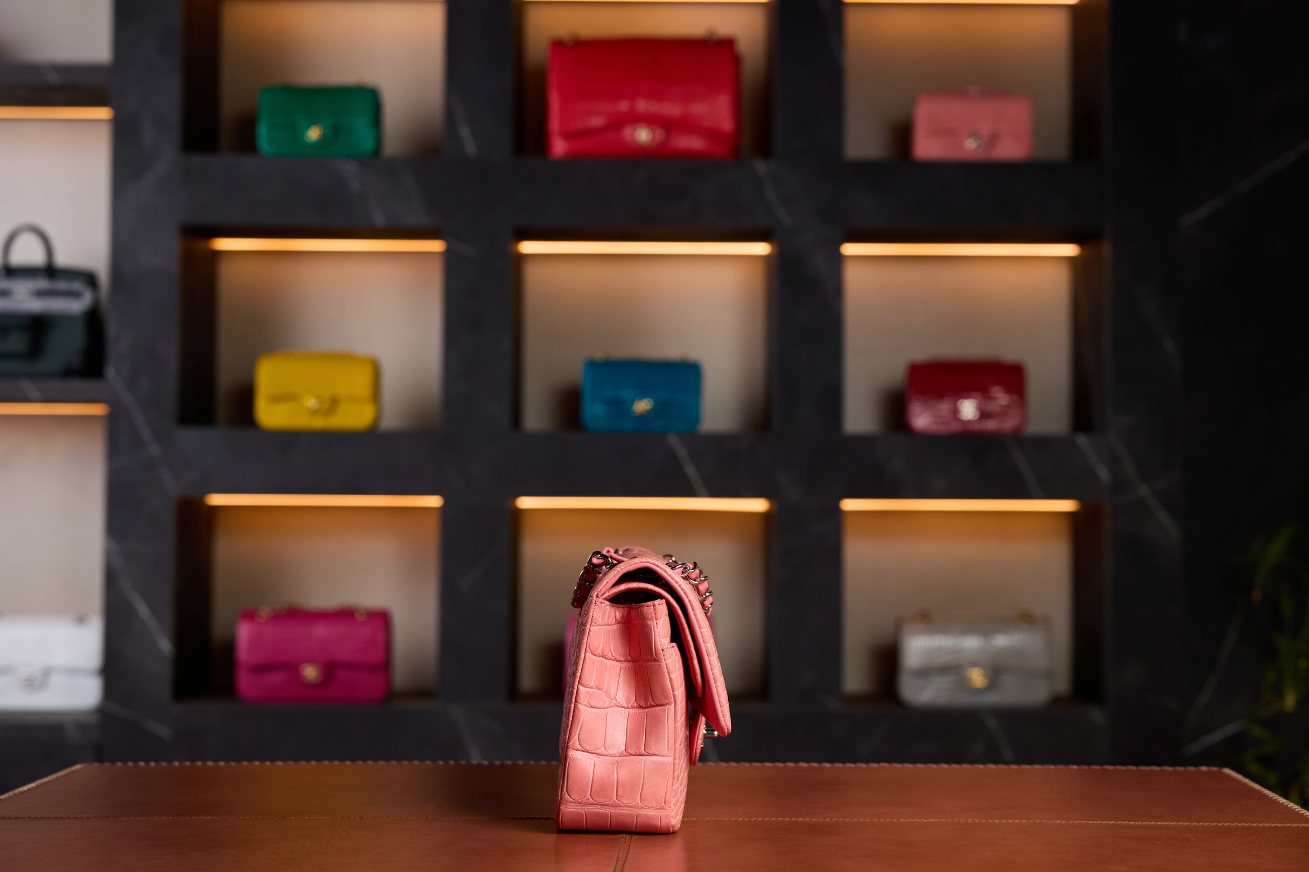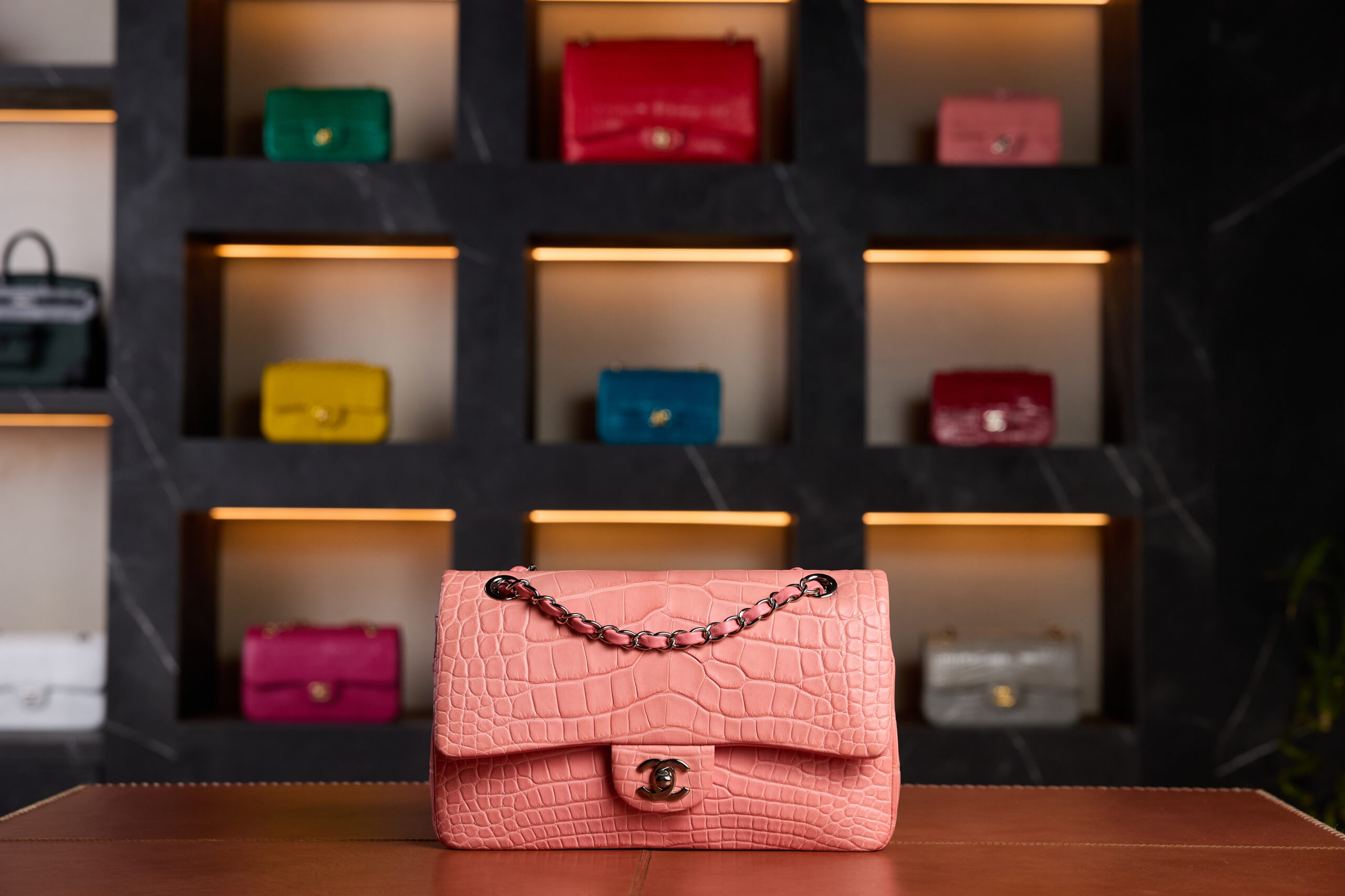 The Chanel Mini Classic Flap in Salmon Matte Crocodile captures the essence of Chanel’s haute craftsmanship and artistic subtlety.