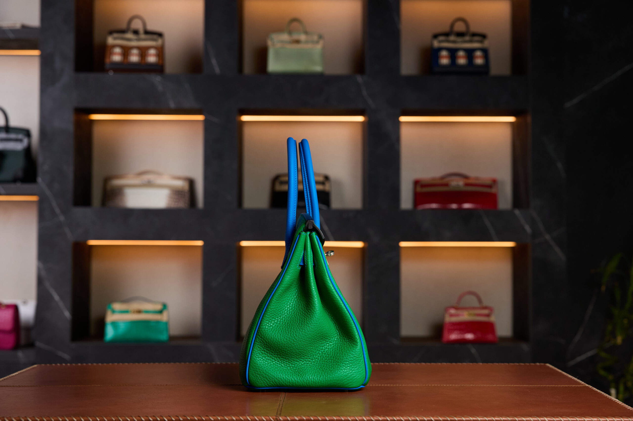 The HermΓ¨s Birkin 30 HSS Special Order in Bamboo Green and Blue Hydra is a breathtaking expression of color artistry and exclusivity. Crafted under the prestigious Horseshoe Stamp (HSS) program, this bespoke piece was made-to-order by one of HermΓ¨sβ most valued clients, a privilege few ever experience.