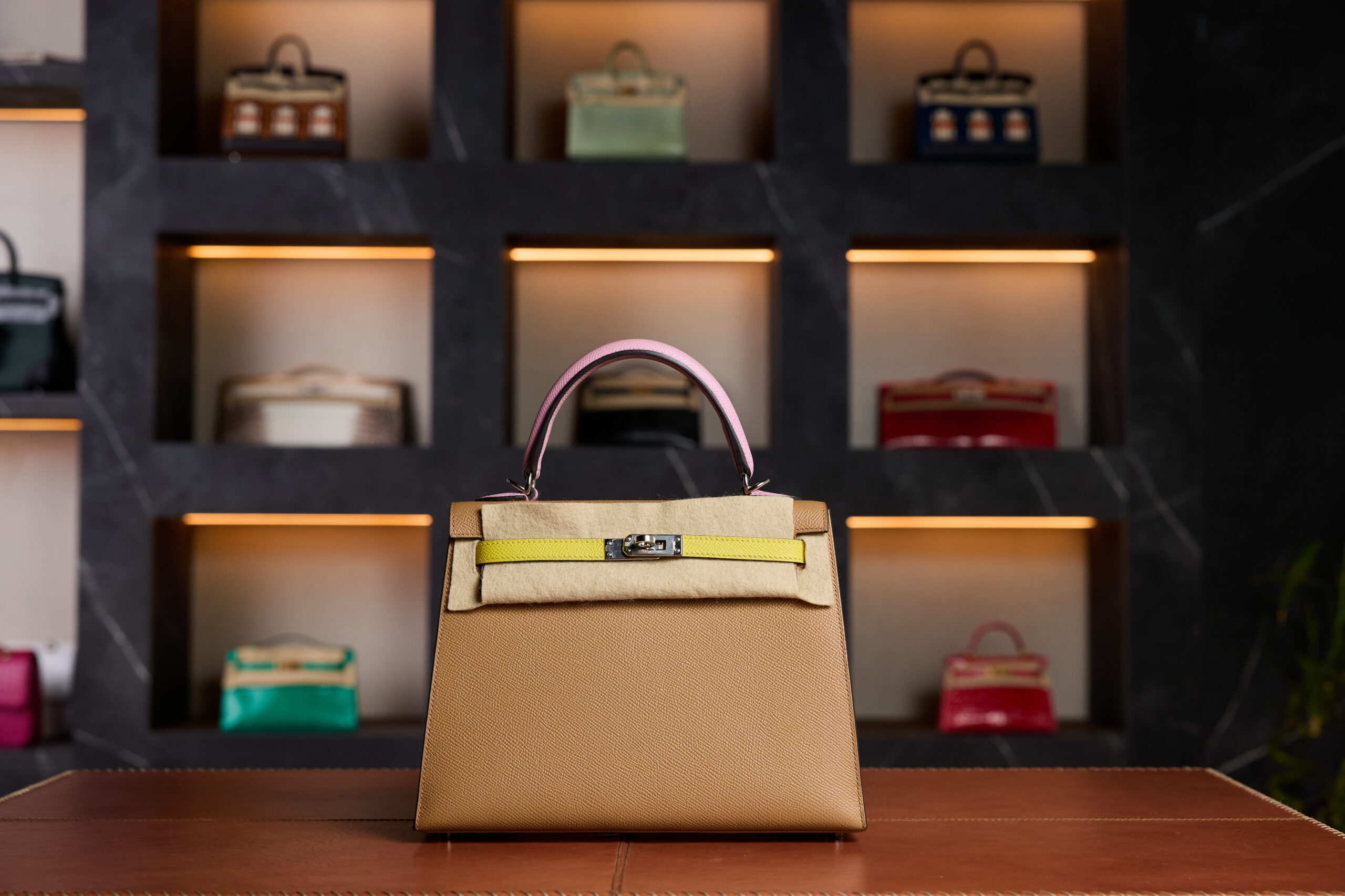 The Hermès Kelly 25 HSS (Special Order) in Gold, John Milton & Mauve Sylvest is a breathtaking example of the Maison’s most exclusive craftsmanship, a true haute couture creation in the world of handbags.
