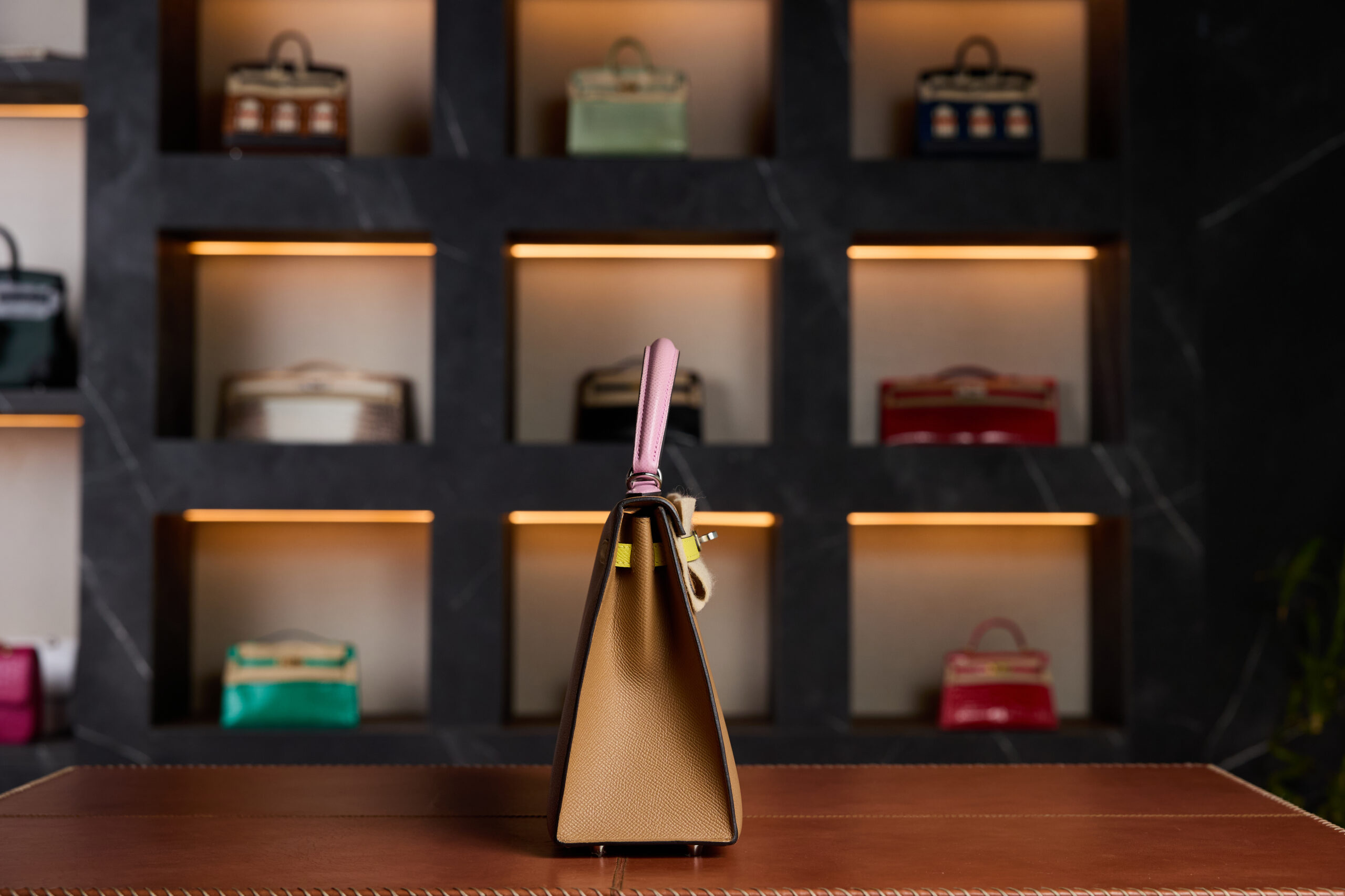 Commissioned under the prestigious Horseshoe Stamp (HSS) program, this bespoke Tricolor Kelly blends three harmonious tones: the classic warmth of Gold, the rich depth of John Milton, and the delicate femininity of Mauve Sylvest. The result is a stunning, one-of-a-kind masterpiece that balances sophistication and subtle color contrast.